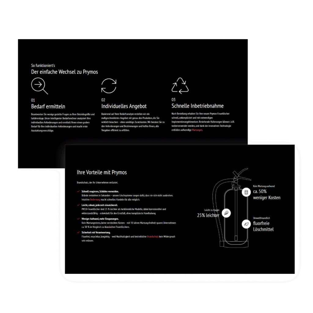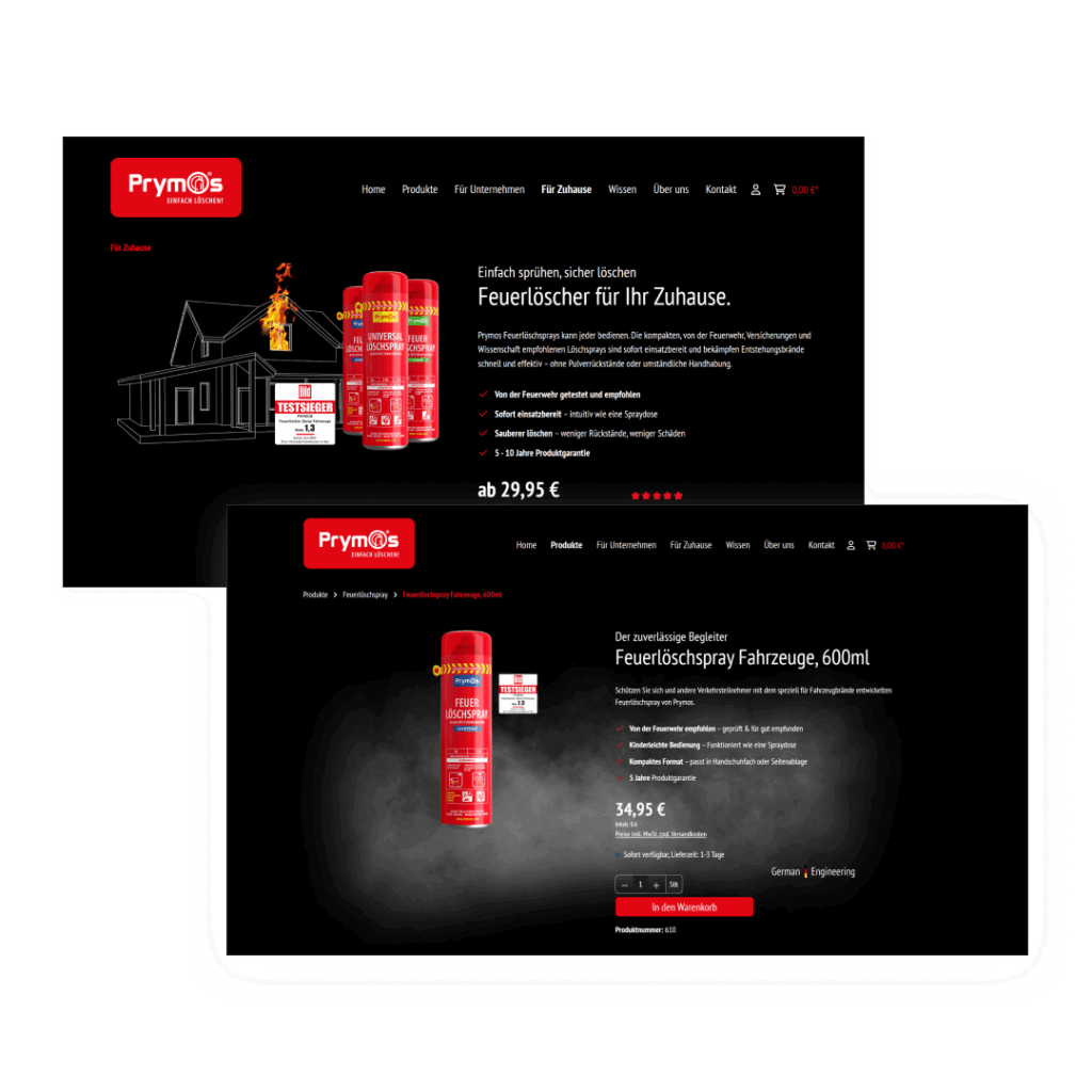 Innovative Produkte verdienen eine Bühne. Besonders dann, wenn sie das Potenzial haben, Leben zu retten – wie das Feuerlöschspray von unserem Kunden Prymos. Doch großartige Lösungen gehen im digitalen Raum allzu oft unter, wenn Markenbotschaft, Design und Vermarktung nicht klar und konsistent orchestriert sind.